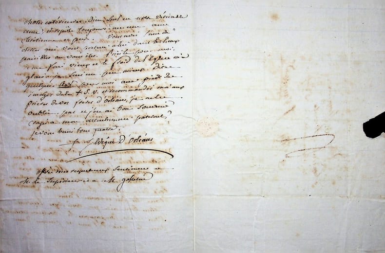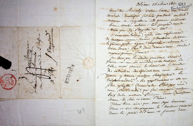 Jean Brumauld de Beauregard (1749-1841), évêque d'Orléans. L.A.S., Orléans, 15 mars 1827, 2p in-4. Belle lettre à Arnould, séminariste du diocèse de Blois qu'il a envoyé au séminaire Saint Sulpice à Paris. Il est prêt à envoyer le secours nécessaire au paiement de la pension du séminaire. Il parle aussi de sa santé. [483]