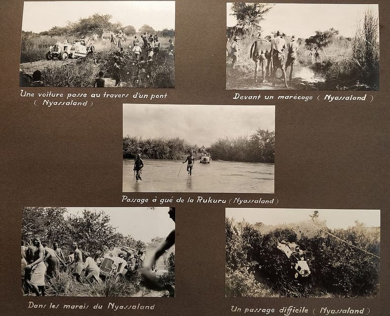 Exceptionnel album contenant 311 photographies, épreuves sur papier baryté (tirage argentique). Cet ensemble de photographies est présenté dans deux volumes à l'italienne (345*460mm). Le premier volume contient 205 photos et le second 106 photos, réparties sur 71 pages. La majorité des photos sont au format environ 80*138mm, de nombreuses photos sont plus grandes, environ 118*165mm. Les photos sont globalement en très bon état, quelques-unes sont jaunies. Le corps du premier volume est détaché de la reliure (ouvrage très lourd, difficile à manipuler). L'album commence par une page de titre, les photos des 18 membres de l'expédition, puis les photos de l'expédition à proprement parler. Toutes les photos sont légendées vraisemblablement par Specht, avec néanmoins quelques erreurs (Specht indique rapidement Nyassaland alors que l'expédition est encore en Tanzanie par exemple). Notons que dans les membres de l'expédition, on trouve Baba, interprète, boy et cuisinier, personnage souvent absent. Un détail particulièrement cocasse : on ne voit pas Léon Poirier parmi les membres de l'expédition, et on ne le voit d'ailleurs que très peu dans l'album. Specht était pourtant son assistant. Il ne nomme d'ailleurs que très rarement les personnages de l'expédition dans l'album, y compris quand il est présent sur les photos. Les photographies montrent toute la Croisière Noire depuis le départ jusqu'à l'arrivée et suivent en particulier le trajet du groupe Haardt dont faisait partie Specht (mis en évidence sur la carte ci-contre). Il s'agit donc du trajet qui, arrivé à Tabora (Tanzanie), continue vers le Malawi en longeant le lac Nyassa et arrive au Mozambique portugais. Cet album est un témoignage quasi-unique de la Croisière Noire et est l'unique album-souvenir connu à ce jour. En effet, Georges-Marie Haardt possédait un tirage de quasiment toutes les photos, le tout réparti dans 11 volumes. Cet ensemble était donc plutôt une archive et non un album souvenir et les manques sont les quelques erreurs quasi-inévitables sur un tel nombre de photographies. Il a été acquis auprès de la famille par le musée du quai Branly en 1967. On retrouve en ligne une partie des photographies numérisées . Audouin-Dubreuil possédait 189 photographies, dans des tirages similaires aux nôtres (dimensions comprises), qui avaient souvent été contrecollées mais sans faire partie d'un album. L'ensemble fut d'ailleurs divisé en 4 lots lors de la vente en 2010 . Elles semblaient reprendre des épisodes de la totalité de l'expédition. Specht a donc fait sa propre sélection. Cet exceptionnel ensemble, impossible à détailler précisément, est à découvrir. La quasi-totalité des photographies sont bien choisies : belles vues animées, beaux portraits, peu de paysages, beaucoup de photographies montrant des anecdotes comme les passages difficiles, notamment la partie au Nyassaland qui était considérée comme impossible par les anglais et aussi la vie courante et des personnages de l'expédition. On voit un peu tous les membres de l'expédition et beaucoup les autochenilles. Notons que le début se concentre plus sur les populations et les évènements liés au passage de la croisière. La seconde partie en revanche se concentre principalement sur les autochenilles, avant une série de photos à Madagascar. Quelques photos à la fin concernent le retour et le passage par Zanzibar et le canal de Suez. Une telle réunion de photographies originales de la Croisière Noire, couvrant toute l'expédition, est quasi-unique voire unique puisqu'on ne connait aucun équivalent sur le marché et que le seul album similaire est celui de Haardt, conservé au musée du Quai Branly et qui constitue une archive et non un album-souvenir. Une seule photographie de cet album n'est pas dans le fonds Haardt (oubli vraisemblable). Une liste détaillée des photos avec son numéro et la référence dans le fonds Haardt sera remise à l'acheteur. Plus de renseignements sur demande.