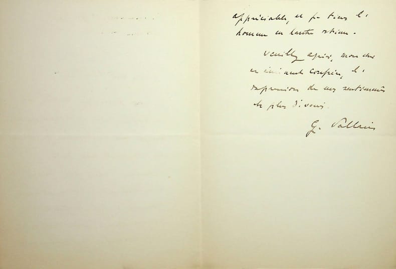 Georges Pallain (1847-1923), fonctionnaire, gouverneur de la Banque de France. L.A.S., 3 novembre, 1p 1/2 in-12. A l'historien, économiste et géographe Pierre-Emile Levasseur (1828-1911). « je vous remercie de votre aimable communication et je suis très heureux de savoir qu'Aupetit nous reste ». Il loue ensuite Aupetit, « ce jeune homme a une maturité d'esprit tout à fait exceptionnel ». Il s'agit vraisemblablement d'Albert Aupetit (1876-1943). [486]