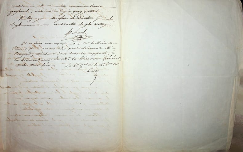 Henry Barbet (1789-1875), industriel, député maire de Rouen ; François-Antoine Teste (1775-1862), général. L.A.S., sd, 1p 1/2 in-4. A Jean-Baptiste Teste (1780-1852), avocat, ministre, député, frère du général Teste. Longue lettre de recommandation pour un officier de marine, Tougard, pour une place au Havre. Le courrier est écrit par Barbet qui signe, suivi d'un petit message du général Teste, signé aussi, à l'adresse de son frère. [487]