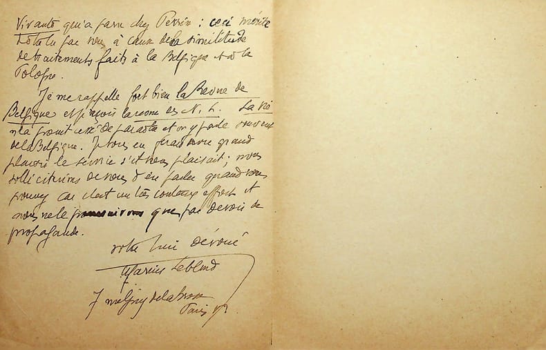 Blanche Albane dite Blanche Duhamel (1886-1975), actrice, épouse de l'écrivain Georges Duhamel. L.A.S., 20 janvier 1931, 3p in-12. A l'écrivain Maurice Wilmotte (1861-1942). Elle écrit au nom de son mari à propos de conférences qu'il doit faire en Belgique, qui sont déjà annoncées mais pour lesquelles Wilmotte et Duhamel ne se sont pas encore mis d'accord. Jolie lettre. [489]