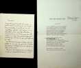 0 1 lettre autographe d'une page, signée par Coquelin Ainé, papier filigrané, toute petite trace de pliures. Feuillet double de format in 8: 175x110mm. '' Mon cher Bodinier Vous n'étes pas gentil de n'avoir pris la peine de vous déranger...''. Ce document original est présenté à plat sur un montage ancien du début du XXème siècle, la lettre est collée au verso par un fin onglet posé le long de l'extrémité de la marge inférieure et sur un feuillet de beau papier vergé fort (format: 325x245mm). Benoît Constant Coquelin, dit Coquelin aîné, Boulogne-sur-Mer 1841 - Couilly-Pont-aux-Dames 1909, acteur français, il crée le rôle de Cyrano de Bergerac au théâtre de la Porte-Saint-Martin en 1897
