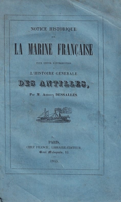 Polak, 2597. Sabin, 19764. Dampierre, p. 174-177 (pour l'Histoire). Rare première édition séparée de l'introduction de l'ouvrage majeur de Dessalles.Adrien Dessalles (1809-1870), lieutenant commissaire commandant à la Martinique, était issu d'une famille créole implantée à la Martinique depuis le XVIIe siècle. Il publia son Histoire générale des Antilles (5 vol., chez le même éditeur, 1847-1848) qui est l'« œuvre historique la plus important que nous possédions sur ce sujet » (cf. Dampierre)