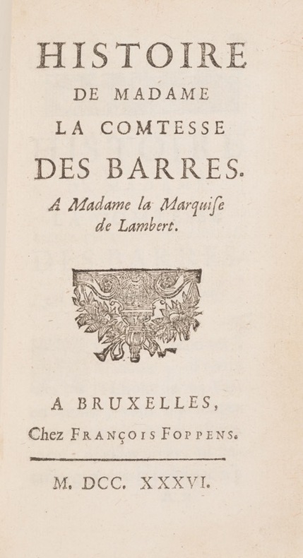 Rare édition imprimée un an après l'originale. "L'abbé de Choisy eut une jeunesse peu réglée et pendant plusieurs années, déguisé en femme sous le nom de comtesse des Barres il se livra au libertinage que lui permettait ce déguisement. C'est à ses aventures que Louvet a tiré le sujet du roman de faublas" (Gay) Gay-Lemonnyer II, 520. Voir gay-Lemonnyer