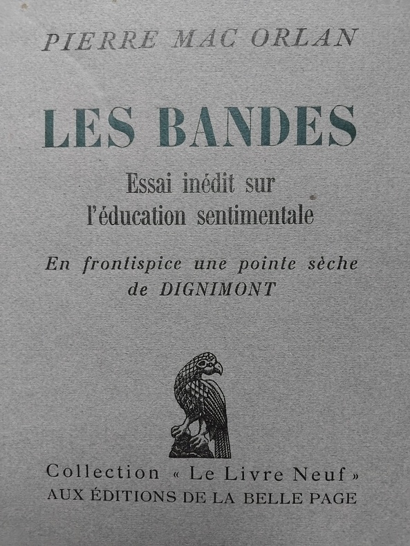 Edition originale illustrée en frontispice d'une pointe-sèche d'André DIGNIMONT, signée. Tirage à 500 exemplaires numérotés. >>>>>Un des 20 exemplaires sur vélin d'Arches contenant, encartées dans l'ouvrage, une planche d'état et une suite du frontispice. Bon 0
