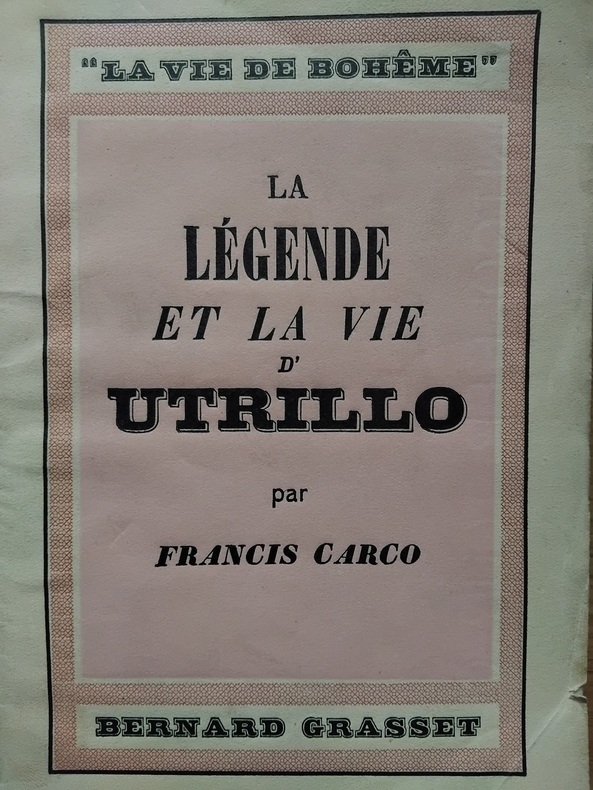 Paris, Bernard Grasset, Collection "La vie de Bohême-1", 1928. In-12, broché, couverture impirmée en deux tons, 224 pp. Portrait de M. Utrillo en frontispice d'après une peinture, par Utter. - Edition originale. Un des exemplaires numérotés sur Alfa
