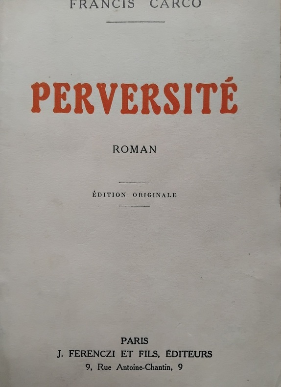 1925 CARCO Francis : Perversité. Ferenczi éditeur Paris 1925. E.O. L’un des 80 ex. sur Hollande, 2ème papier. Superbe reliure in-8 demi maroquin vieux rouge à coins, dos à 5 nerfs, tête dorée, couvertures conservées (reliure signée Blanchetière)