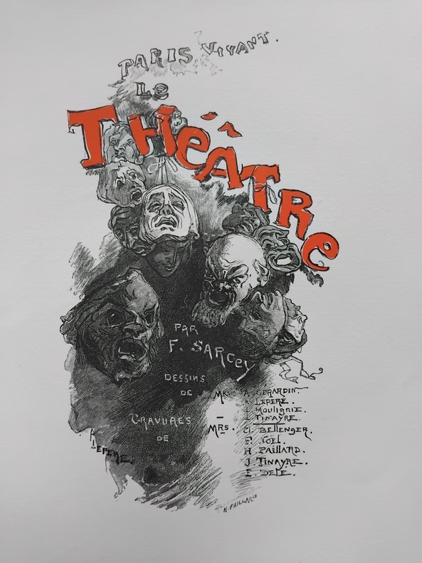 Le Journal :- 3 eaux-fortes par A. Gérardin, A. Lepère et L. Tinayre.- Dessins par A. Gérardin, L. Moulignié, A. Lepère et L. Tinayre gravés sur bois.Un des 500 sur papier du Marais.Le Théâtre : - 3 eaux-fortes par A. Gérardin, A. Lepère et L. Moulignié.- Dessins par A. Gérardin, L. Moulignié, A. Lepère et L. Tinayre gravés sur bois.Un des 500 sur papier du Marais.* Carteret IV, 467 et VII, 360.* Voir photographie(s) / See the picture(s). * Membre du SLAM et de la LILA / ILAB Member. La librairie est ouverte sur rendez-vous.