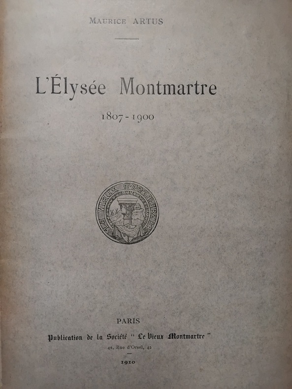 Paris, Publication de la Société "Le vieux Montmartre", 1910. Un volume (26 cm x 16,5 cm), 68 pp. Broché.