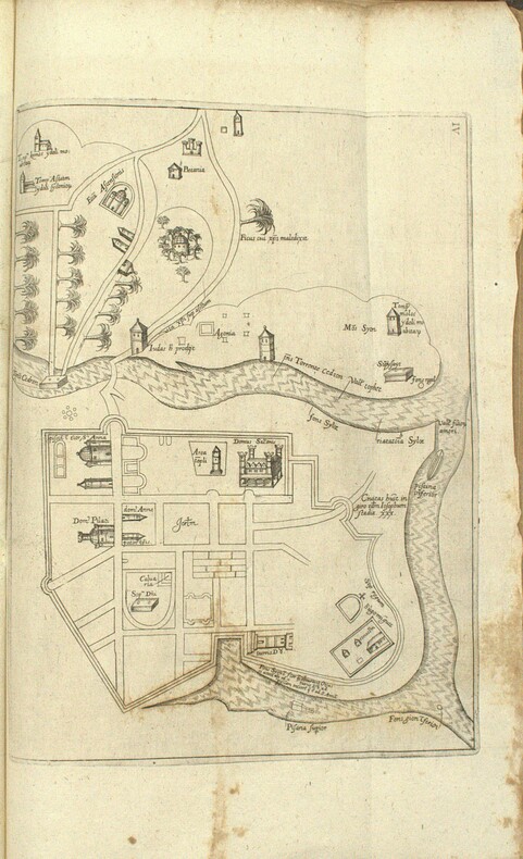 Édition originale de cette anthologie capitale sur les Croisades, rassemblée par l’humaniste et diplomate Jacques Bongars (1554–1612). En 1611 Bongars réunissait les principales chroniques (Guillaume de Tyr, Albert d'Aix, Foucher de Chartres, Jacques de Vitry, Sanudo...) dans ses Gesta Dei per Francos.Toutes les chroniques des croisades avec listes des princes, prélats et militaires et 5 cartes g.s.c. à la manière de Peutinger. Les écrits les plus remarquables de Jacques de Vitry sont : l'Histoire orientale et l'Histoire occidentale. Il composa la première à Ptolémaïs, la seconde à son retour en France. L’Histoire orientale se divise en trois parties : Jacques Bongars en a imprimé deux dans l'édition de 1611 : Gesta Dei per Francos, sive orientalium et expeditionum, et regni francorum Hierosolymitani Historia. Dans les pages 819-820 et 1084, il y traite des origines et de la discipline des Templiers. Elle est illustrée de cinq cartes remarquables, gravées sur cuivre, dont trois grandes dépliantes : une Mappemonde Portulana circulaire centrée sur Jérusalem, réalisée d’après Pietro Vesconte (v. 1311), considérée comme la première carte du monde imprimée issue d’un manuscrit médiéval; une Carte de la Terre Sainte, divisée selon les douze tribus d’Israël, riche en toponymes bibliques ; un plan détaillé de Jérusalem, figurant ses édifices religieux et ses environs ; un plan de la ville fortifiée d’Acre, dernier bastion des croisés en Terre sainte ; une carte maritime de la Méditerranée orientale, d’après les portulans italiens. La carte du monde de Johann Bongars est la première preuve imprimée survivante de la carte du monde de Pietro Vesconte (vers 1311), généralement considérée comme l'un des premiers exemples survivants d'une carte du monde moderne dessinée à l'époque médiévale, dans un ouvrage manuscrit du XIVe siècle de Marino Sanudo, qui a été reproduit pour la première fois sous forme imprimée dans l'Orientalium expéditionum historia de Bongars. Gesta Dei per Francos, sive Orientalium expéditionum, et regni Francorum Hierosolimitani historia (Hanau, 1611). Bien qu'elle ne soit pas aussi largement diffusée que les cartes de Claude Ptolémée, la carte de Vesconte/Sanudo est peut-être l'artefact cartographique le plus important du début du 14e siècle, offrant un excellent aperçu de la conception moderne du monde, plus de 150 ans avant les premières connues, comme l'a noté Shirley (Mapping of the World, 276), il s’agit d’un des rares exemples de cartographie médiévale imprimée fondée sur un portulan. First edition of an important collection of chronicles of the Crusades, including the first printed example of Pietro Vesconte's medieval map of the World. The planispheric world map is ‘one of the few examples of medieval maps based on portolano sources in printed form’ (Shirley). The engraved maps are found in the separately-paginated second part of the present volume, Liber secretorum fidelium crucis by Marino Sanudo (c.1270–1343), a treatise intended to inspire a revival in the Crusades and which includes extensive accounts of trade, politics and history. Une des deux variantes de la page de titre signalées par Ioannou. Atabey 127 – Ioannou 49 – Shirley 276