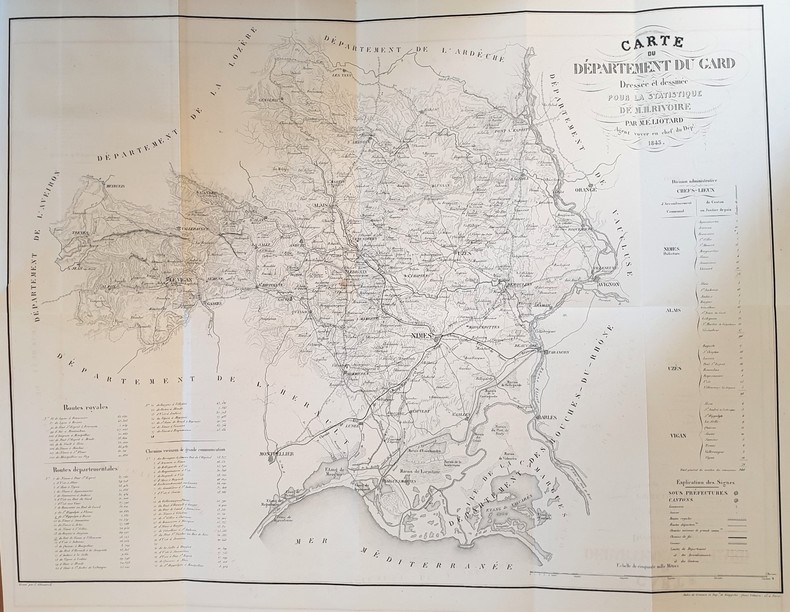 In 4° (230 x 300 mm), reliés demi basane de l'époque,tranches rouges, dos orné, dos fatigués, intérieur en bel état. 2 volumes Tome 1 XVI 668 pp avec 9 lithographies ht (maison carrée, les arènes, le temple de Diane, l'église de saint gilles) Tome 2 819 pp et une grande carte dépliante in fine. In 4° (230 x 300 mm), bound half basane of the period, red edges, ornate spine, tired back, inside in good condition. 2 volumes Volume 1 XVI 668 pp with 9 lithographs ht (square house, the arena, the temple of Diana, the church of saint gilles) Volume 2 819 pp and a large folding card at the end.