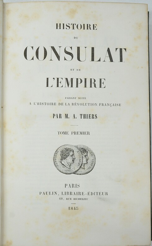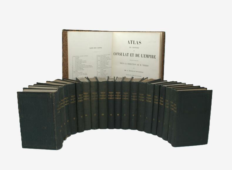 Pas toujours joint aux volumes de texte, cet atlas complète la classique Histoire du Consulat et de l'Empire, tant dans son édition originale de 1842-1865 que dans les réimpressions. Bon exemplaire. - - VENTE PAR CORRESPONDANCE UNIQUEMENT