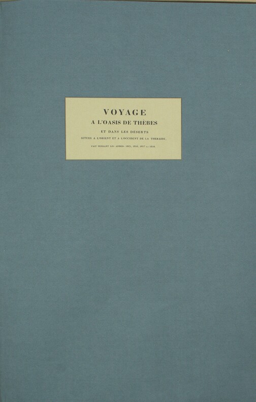 RARISSIME ensemble comprenant la deuxième partie de l’ouvrage de Frédéric Cailliaud, imprimé 40 ans après par les soins de E. Fr. Jomard, président de la Commission chargée de la rédaction et de la publication de la Description de l'Égypte, qui considérait l’œuvre de Cailliaud comme une suite de la Description d’Égypte, il s’agit là de l’explication des objets composant la collection rapportée par l’auteur dont certains aidèrent Champollion à confirmer ses hypothèses sur les hiéroglyphes … Né à Nantes en 1787, Frédéric Cailliaud parti pour l’’Orient en 1815. Il atteignit Constantinople où il mit ses talents de bijoutier au service du sultan Mahmoud II, puis décida de poursuivre sa route Jusqu’en Égypte. Ou il fit la connaissance de Bernardino Drovetti, vice-consul de France en Égypte, Après un voyage en Nubie (janvier-avril 1816) en sa compagnie, Drovetti le présenta au vice- Roi d’Égypte Méhémet Ali. Ce dernier nomma Frédéric Cailliaud minéralogiste officiel et lui Confia pour mission de retrouver les mines d’émeraudes du Gebel Zubarah, situé dans le désert Oriental, durant cette expédition, Cailliaud découvrit le temple de Redessieh, les ruines de Sekket, L’antique route de Coptos à Bérénice et rapporta des mines dix livres d’émeraudes au Pacha. Au cours de l’été 1818, il entreprit un voyage dans le désert de l’Ouest et fut l’un des premiers Européens à atteindre l’oasis de Kharga. Cailliaud constitua ainsi une première collection d’antiquités, des objets d’un intérêt majeur, ainsi que les pièces disposant d’une valeur anthropologique pour la connaissance de la vie quotidienne. FIRST EDITION. 2 vol. in-folio, xvii (with title and half-title), 120 pp. ; title, half-title, v, 27 pp and 44 engraved plates (45), 10 in colour and 4 double-page. Waterstain in fist part and some foxing and spotting especially in the second part. The French traveller and mineralogist Cailliaud first visited Egypt in 1815. Between then and 1818 he was employed by Mehmet Ali to find the emerald mines of Mount Zabarah. He visited Upper Egypt and Nubia as far as Wadi Halfa with Drovetti and explored the routes to the Red Sea, discovering the quarries and ruins of Coptos. The second volume contains a description of selected objects from the collection which Cailliaud brought back to Paris with him in 1822 with THE SECOND VOLUME, published 40 years after the first and present here, is PARTICULARLY RARE. Ref.: Brunet I, 1465; Gay 1967 M3-Et0