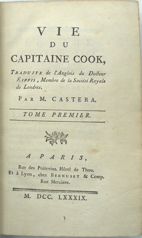 Première édition française de la première biographie de Cook, complète en 2 volumes. * Voir photographies / See pictures. * Membre du SLAM et de la LILA / ILAB Member. La librairie est ouverte du lundi au vendredi de 14h à 19h. Merci de nous prévenir avant de passer,certains de nos livres étant entreposés dans une réserve.