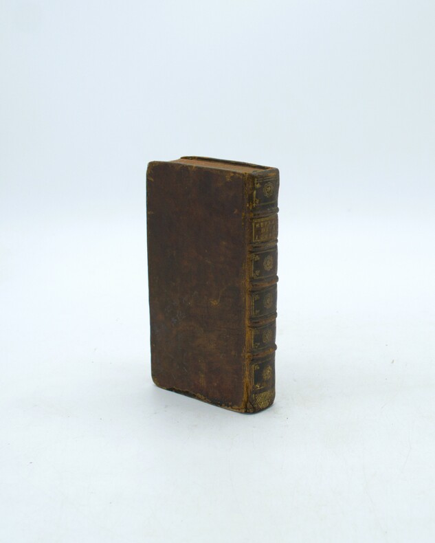 Paris, chez Louis Guérin, 1727. In-12 (17x10cm), 12ff.-428 pp., basane époque, dos à nerfs avec pièce de titre, frottements, coins usés, coupés usées, traces de feu en pied sans gravité, 1er feuillet blanc détaché. Tampons anciens du collège jésuite de Reims au titre.