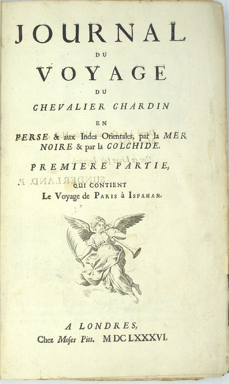 Jean Chardin , Diamantaire français , connu pour sa relation de ses séjours en Perse et en Orient à la fin du XVIIe , Fils d’un bijoutier protestant, il se rend en Perse et en Inde en 1665 pour y faire le commerce des diamants. Il plaît au roi de Perse, Shah Abbas II, qui le nomme son marchand. De retour en France en 1670, il publie "Le couronnement de Soleïmaan troisième, roy de Perse". Puis il repart pour la Perse en août 1671, en faisant cette fois-ci un long périple qui le mène à Smyrne, à Constantinople, en Crimée, dans le Caucase et en Géorgie. Il arrive à Isfahan en juin 1673, reste quatre ans en Perse et retourne en Inde avant de revenir en Europe en 1680 en passant par le Cap de Bonne-Espérance. Constatant à son retour que les Protestants sont persécutés en France, il se rend en 1681 en Angleterre, où Charles II le fait chevalier et le nomme bijoutier de la cour. Il s’y marie et devient membre de la Royal Society en 1682. Chardin se rend ensuite en Hollande en tant que représentant de la Compagnie anglaise des Indes orientales et c’est à Amsterdam qu’il publie en 1686 la première partie des "Voyages de monsieur le chevalier Chardin en Perse et autres lieux de l’Orient". Cet ouvrage, qu’il ne complète qu’en 1711, peut-être avec l’aide de François Charpentier, est salué par les philosophes et reçoit les éloges de Montesquieu, Rousseau, Voltaire et Gibbon. P1-3N