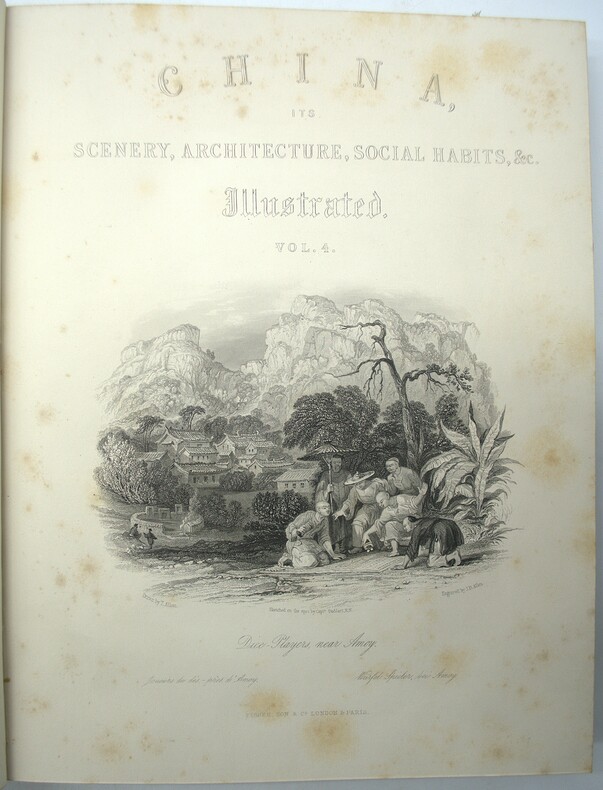 Paris et Londres, Fisher, 4 volumes grand in-4 (28 × 22,5 cm). Reliure de l’éditeur en percaline rouge, plats décorés à froid et à l’or, dos ornés de fers dorés, tranches dorées. Intérieurs propres, légères rousseurs éparses, petits frottements au dos du tome 1, dos légèrement insolés 4 titres gravés et 123 planches gravées sur acier d’après Thomas Allom, tirées avec encadrement et légende, gravées par divers artistes (H. Adlard, C. Bentley, J. Sands, etc.), complet selon les tables avec 3 planches en doublons.