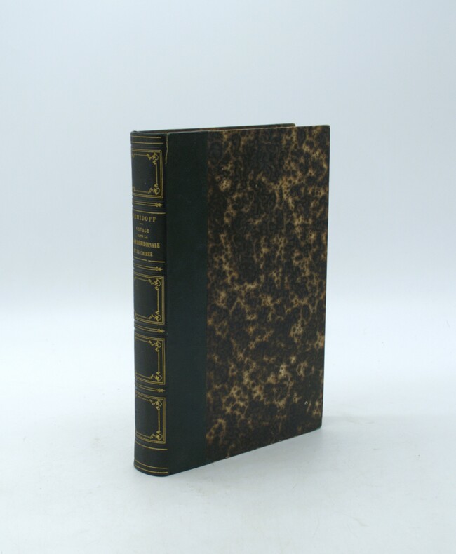 Edition originale de cet ouvrage dans lequel Demidoff relate son voyage entrepris en Russie et en Crimée en 1837. Atabey 337; not in Blackmer; Brunet, II, 583. This is the first part of Demidov's account of his mission in Russia and the Crimea, an account of the voyage itself. The scientific observations by Huot, Leveille, Rousseau and Nordmann were published in three volumes in 1842, together with an atlas of natural history plates.'' (Atabey) Quelques très rares exemplaires possèdent une dédicace à «sa Majesté l’Empereur de toutes les Russies» en viii pp. reliée au début du volume, et le présent exemplaire en fait partie. L’abondante illustration comporte le portrait de Nicolas Ier gravé par Piaud, d’après Raffet et 24 planches gravées hors texte, tirées sur Chine et montées sur papier fort, dont 1 planche de musique. En 1837-1838, Démidoff organisa une expédition scientifique en Russie du Sud et en Crimée, dont il confia la direction scientifique à Frédéric Le Play. Elle comprenait 22 savants, écrivains et artistes français dont Auguste Raffet et le critique Jules Janin. L'expédition comprenait aussi Jean-Jacques Nicolas Huot (géologue), Louis Rousseau (aide naturaliste au Muséum d'Histoire naturelle), Léon Lalanne (ingénieur des Ponts et chaussées), Henri Malinvaud, le dessinateur Raffet, et le comte de Saint-Aldegonde, qui a accompagné Le Play dans sa traversée prospective du bassin du Donetz. La présence de ce dernier personnage, polytechnicien, officier de l'artillerie français au service de la Couronne fait ressortir encore une particularité constatée à juste titre par A. Savoye : la commandite tripartite de l'expédition. En effet, celle-ci comprend d'abord Démidoff, initiateur et directeur du voyage, ensuite, d'une façon implicite, les administrations des Corps des Mines et des Ponts françaises sans l'aval desquelles les fonctionnaires de ces corps n'auraient pas pu être du voyage, enfin, les autorités russes qui, outre l'autorisation officielle de prospecter, lui apportent un soutien logistique subsistant. Notons que, de leur côté, les services de renseignement français ont porté de l'intérêt à ce voyage. En tout cas, dans les circonstances et au moment que nous ignorons, les rapports de Le Play et de Saint-Aldegonde relatifs à la prospection du bassin du Donetz leur ont été transmis ; le résultat de cette expédition fut publié sous le titre Voyage dans la Russie méridionale et la Crimée avec une centaine de lithographies originales de Raffet. Le tsar, dédicataire de l'ouvrage, montra de l'irritation contre le fait que la plupart des membres de l'expédition étaient français. Démidoff voulait combattre certaines idées reçues des Français à l'encontre de la Russie. Néanmoins, ces comptes-rendus irritèrent le tsar Nicolas Ier par leur description du système féodal russe. Bel exemplaire bien complet de la préface, de la dédicace et de la planche de musique «Marche Valaque» qui manquent souvent, de cet intéressant récit de voyage, conservé dans sa reliure romantique de l’époque en chagrin rouge richement décoré.