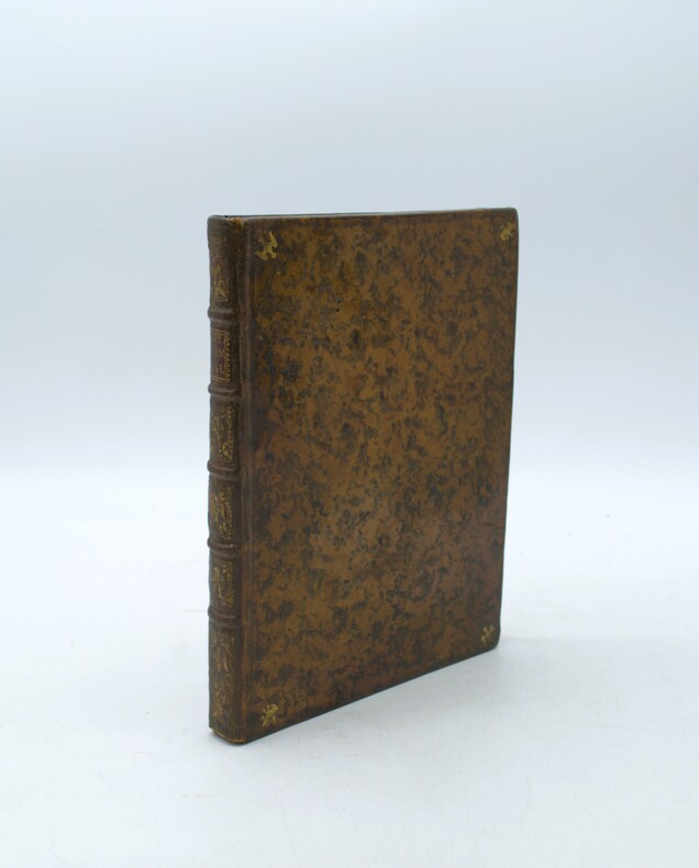 Lyon, chez les Frères Duplain, 1756. In-4° (25,5x19,5cm), 1f.-xvi-185 pp.- xiv pp. (table des matières), veau marbré époque, dos à nerfs orné de lions et oiseaux avec pièce de titre grenat, lions et oiseaux aux coins des plats, tranches rouges, doubles filets aux coupes, très légères rousseurs, coiffe sup. arasée, mouillure très claire, manque la page de titre Illustré d’une vignette gravée sur cuivre en tête du texte, d’après Delamonce.