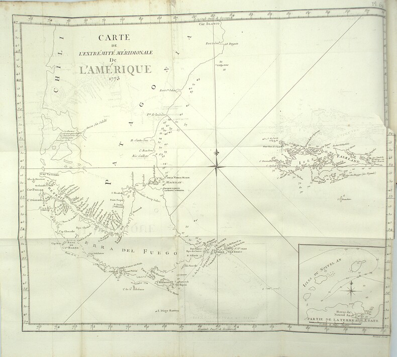 Premier volume du second voyage de Cook relatant le départ d’Angleterre jusqu’à son arrivée à Tahiti, passant par le Cap et la Nouvelle Zélande. P1-Et3