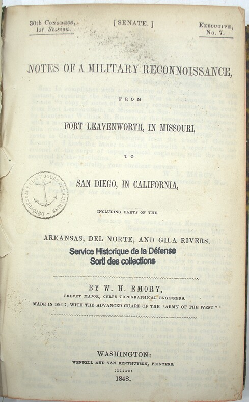Military reconnaissance, Mexican–American War, Western Americana, Southwest exploration, early California, cartography, Native American ethnography, botanical plates, battle plans, meteorological data, astronomical observations, topographical engineering, Arkansas to San Diego, Senate report, XIX, 19eme