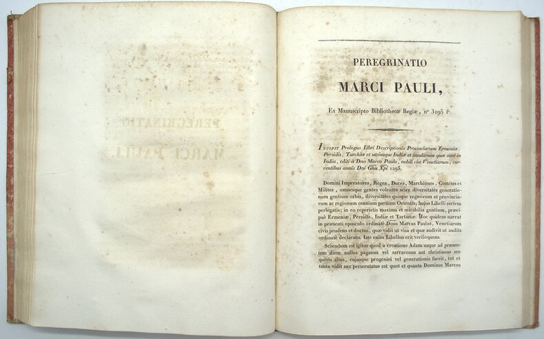 Texte en français moyenâgeux suivi du texte en latin Édition princeps des Voyages de Marco Polo, la plus importante relation de Voyage jamais écrite. Malgré de nombreuses traductions depuis 1477, c’est la première édition tirée de l’originale (vieux français) BNF MS.7367 et en même temps la plus importante traduction Latine BNF MS 3195. Le texte français [.] publié par la Société de géographie de Paris en 1824 apporte la preuve qu'il s'agit d'une traduction originale. Cette Édition est des plus importantes et se signale par la correspondance et la justesse des noms propres. Contient aussi le texte Latin. Bon exemplaire de cette première édition de l’un des livres qui ont changé le monde. First edition of this monumental work. Very important and first edition from the original manuscripts of the BNF of the travel of Marco Polo. Ch-1B