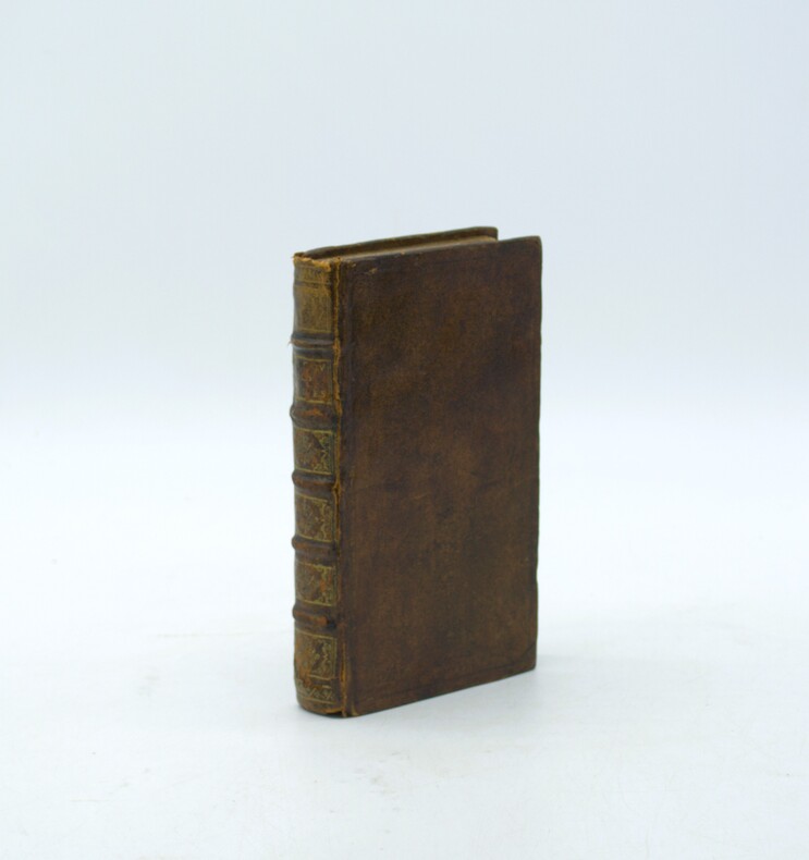 Paris, André Pralard, 1697. In-12 (9,5 × 16,5 cm). Frontispice, (10)-382-(2) pages. Pleine basane d’époque, dos à cinq nerfs. Un mors fendu rendant fragile le premier plat, frottements au dos, ex-libris retiré en tête du titre. Rares rousseurs, sinon bon état intérieur.