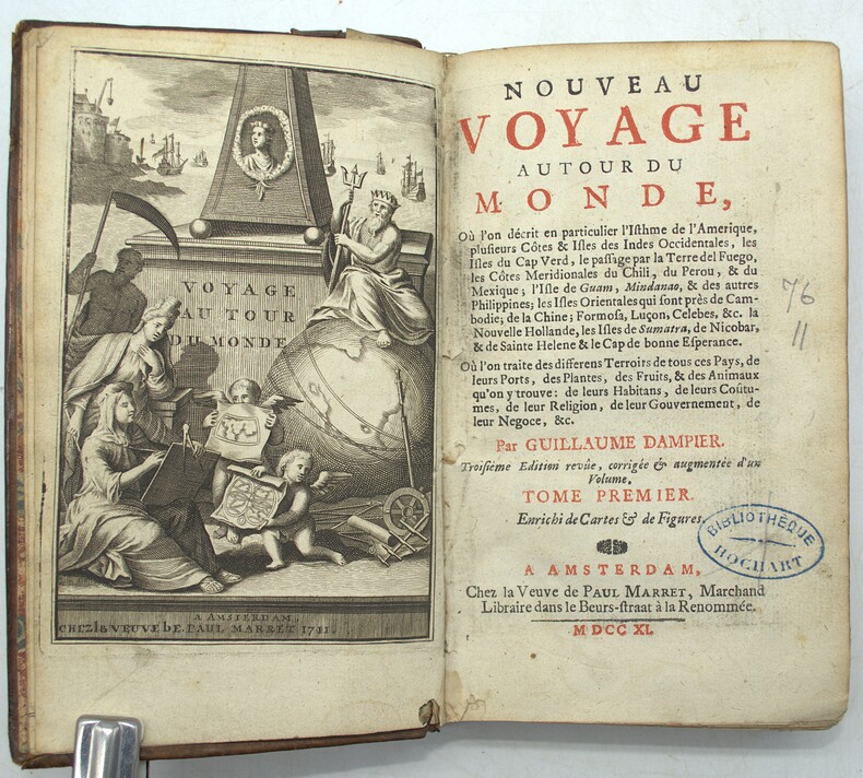 Tome 1 seul (5) des voyages autour du Monde de Guillaume Dampier, comprenant ses aventures dans les Indes Orientales et Occidentales. Illustré d’un frontispice. M3-Et4
