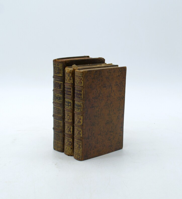 Amsterdam, chez Jean Catuffe, 1741-43, 3 vol. in-12(170x100mm), 2ffnch., xiii-5ffnch(table) 428pp -1ffnch ,8ffnch – 262pp, 10ffnch-320pp., relié plein veau époque, dos à nerfs ornés avec pièce de titre et tomaison, tome 1 reliure différente. Coins usés, coiffes arasées avec petit manque au dos tome 2, mouillure claire en marge (T1), en coin (T2), page de titre presque détachée (T2), ex-libris manuscrit au tome 1 « Duplat de Monticourt »
