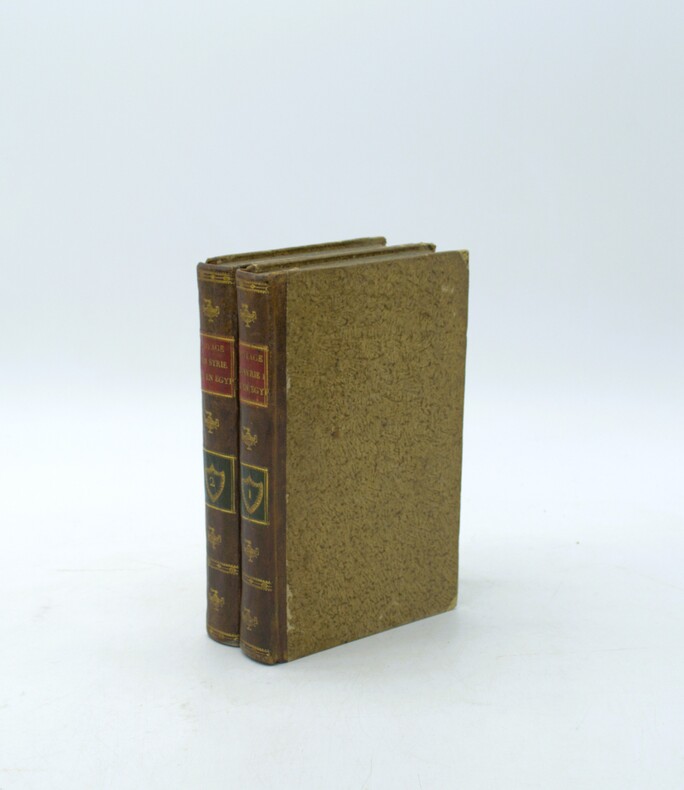 Troisième édition, revue et corrigée par l'auteur. Augmentée :1° De la notice de deux manuscrits arabes inédits qui fournissent des détails nouveaux et curieux sur l'histoire, la population, les revenus, les impôts, les arts de l'Égypte, ainsi que sur l'état militaire, l'administration, l'étiquette des Mamlouks Tcherkasse, et sur l'organisation régulière de la poste aux pigeons ; 2° D'un tableau exact de tout le commerce du Levant, extrait des registres de la chambre de commerce de Marseille ; 3° Des considérations sur la guerre des Russes et des Turks, publiées en 1784 ; 4° De deux gravures nouvelles représentant les pyramides et le sphinx, auxquelles sont jointes les planches de Palmyre, de Balbek, et trois cartes géographiques toutes refaites à neuf -Reliure pleine basane marbrée. Dos lisses richement ornés de mosaïques dorées, pièces de titre et de tomaison rouges. Encadrement doré sur les plats. Coins légèrement émoussés. Toutes tranches dorées. Intérieur d'une belle fraîcheur. Avec 3 cartes, 1 plan et 4 planches repliées. Reliure signée COLAS. Mors inférieur du tome 2 un peu fendu mais sans fragilité. Petite déchirure sur page de titre du Tome 1 avec petit manque.