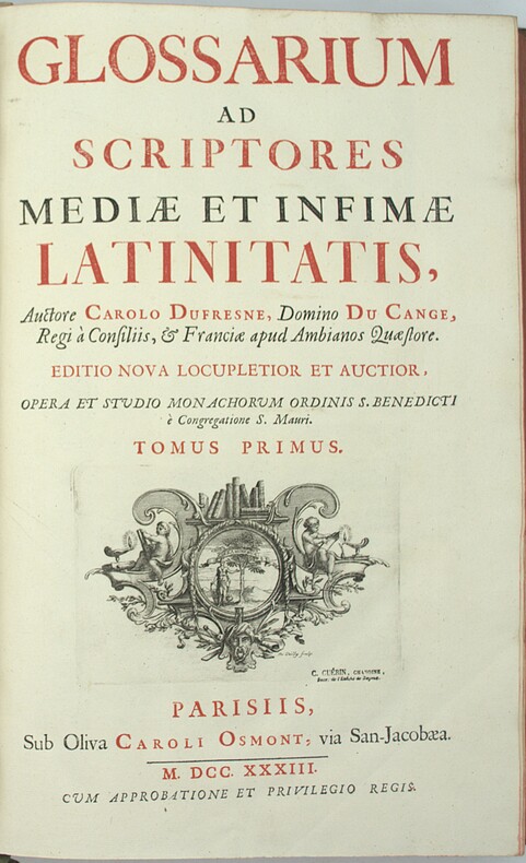Nouvelle édition enrichie et augmentée du monumental Glossarium de Du Cange, œuvre fondamentale pour l’étude du latin médiéval et post-classique. Publié pour la première fois au XVIIe siècle, le Glossarium constitue un instrument lexicographique majeur destiné à éclairer les textes historiques, diplomatiques, juridiques et ecclésiastiques du Moyen Âge. Cette édition du XVIIIe siècle, revue et considérablement augmentée par les bénédictins de la Congrégation de Saint-Maur, intègre de nombreux ajouts, corrections et compléments érudits. Elle témoigne de la méthode critique mauriste et de l’essor de l’érudition historique française à l’époque moderne. L’ouvrage rassemble et explicite les termes, expressions et usages propres au latin médiéval, en s’appuyant sur un vaste corpus de chartes, chroniques, actes officiels et sources ecclésiastiques. Il demeure une référence indispensable pour l’étude de la diplomatique, de l’histoire institutionnelle et de la philologie médiévale. Ch-3C