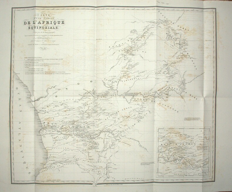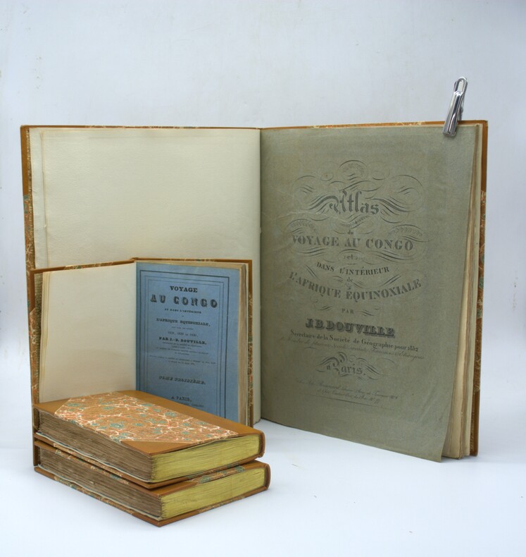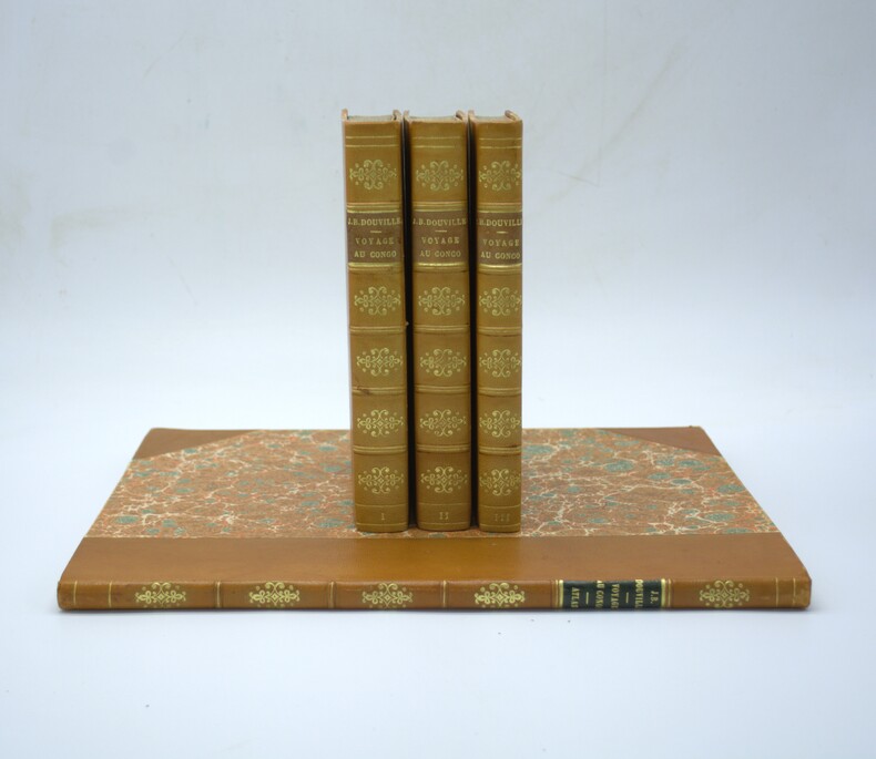 Explorateur et aventurier français, Douville fut le premier à pénétrer dans des régions totalement inconnues au cœur de l'Afrique. Depuis la province portugaise d'Angola, où il entreprit un premier voyage de onze mois à travers les possessions portugaises et les territoires avoisinants, il s'aventura lors d'un second périple jusqu'aux contrées lointaines du Lunda et de régions situées bien plus au nord, rapportant des informations alors entièrement inédites. Ses observations ethnographiques sont remarquables, notamment en ce qui concerne la description politique des royaumes et des tribus africaines. L'une des pages les plus saisissantes est celle que Douville consacre à l'histoire de la formation du royaume de Bihé, émancipation politique qui se serait produite au moment de la conquête portugaise. L'ouvrage contient également de nombreuses observations géologiques, en particulier sur l'existence d'une mine d'or, des faits aujourd'hui avérés. Douville était animé, au cours de son voyage, d'un but commercial : acheter des esclaves à bas prix. La traite des esclaves, leurs prix et leur acheminement y sont donc largement évoqués. Si ce voyage lui valut une gloire immédiate, il fut rapidement accusé d'affabulation par une revue anglaise. Certes, les zones d'ombre entourant la biographie de Douville sont troublantes et son récit comporte quelques inexactitudes, mais ses observations furent confirmées bien plus tard, et l'ensemble de son itinéraire a été validé par Anne Stamm dans les Cahiers d'études africaines, qui a étudié le récit avec une grande rigueur. Le tome 3 se clôt sur des statistiques des villes, bourgs et villages, ainsi qu'un vocabulaire de la langue Mogialoua et de ses deux principaux dialectes, l'Abunda et le Congo. Ch-2A & 1C