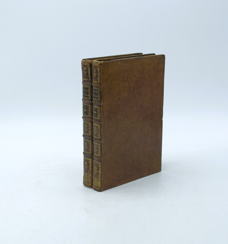 Paris, Apud Desaint & Saillant, 1747, 2 volumes in-8 (22x14,5cm), xxx-1f.-180pp., 181-450pp., veau moucheté, dos à nerfs orné avec pièces de titre et tomaison grenat, tranches coquille, coiffes arasées, frottements aux charnières. Illustré d’un portrait en frontispice gravé par Daullé d’après Hyacinthe Rygaud et d’une vignette