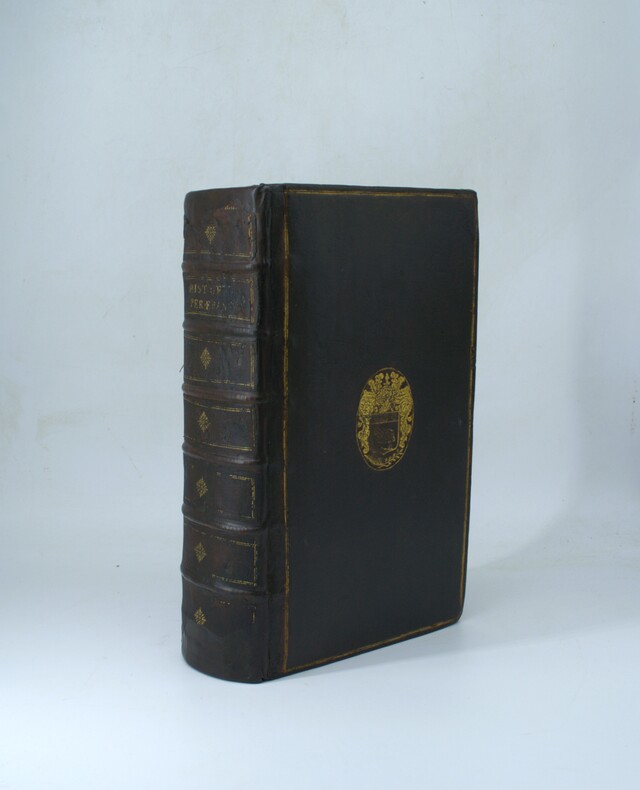 Hanau, Typis Wechelianis apud Claudium Marnium & haeredes Ioan. Aubrii, 1611. In-folio, [16]-1196-[76] pp. + [4]-285-[3] pp., 5 cartes gravées sur cuivre dont 3 grandes dépliantes. Plein veau, dos à nerfs aux armes de la famille de Montholon, restauration à la reliure, brunissures importantes par endroits, légères rousseurs aux cartes, léger pli au titre. Exemplaire complet. Provenance : reliure aux armes de la famille de Montholon ; étiquette de la librairie Dorbon-Ainé. En deux parties avec chacune son titre propre.