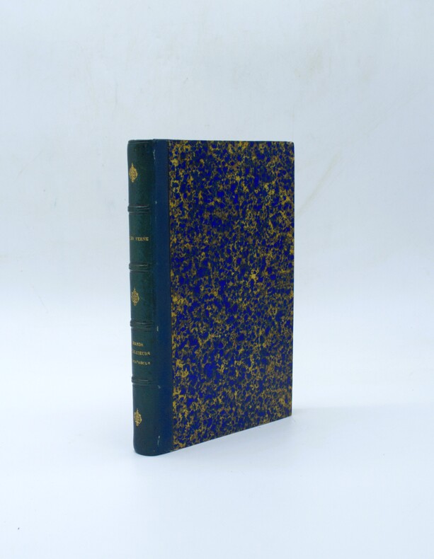 Paris, J. Hetzel et Cie, "Bibliothèque d'éducation et de récréation", [s.d., 1879] 1 volume Grand in-8° (18 x 27cm) Reliure éditeur demi-chagrin vert foncé; dos à 5 faux nerfs, 4 fleurons dorés, auteur-série et titre dorés soulignés de filets dorés. VIp. (dont 1faux-titre avec frontispice au verso et 1titre orné d'une vignette), 1feuillet, 464p.; cartes à pleine page, vignettes in texte. Coiffes et bords un peu frottés; pâles rousseurs.