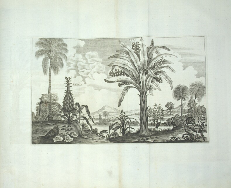 Très séduisant exemplaire à grandes marges conservé dans sa reliure de vélin de l’époque. Leide, Jan de Meurs, 1665. 2 parties en 1 volume in-folio de (9) ff. préliminaires y compris le titre et le frontispice, le portrait gravé et la dédicace, 290 pages, 1 carte dépl., 31 planches sur double-page, marges plus courtes à 1 planche ; 1 f. de titre, 134 pp., 1 f. d’avertissement, 3 planches sur double-page. 114 gravures en tout. Pte. restauration en marge du frontispice, pte. brulure dans la pl. p. 118. Vélin ivoire rigide, tranches jaspées, dos lisse. Reliure de l’époque. 390 x 232 mm.