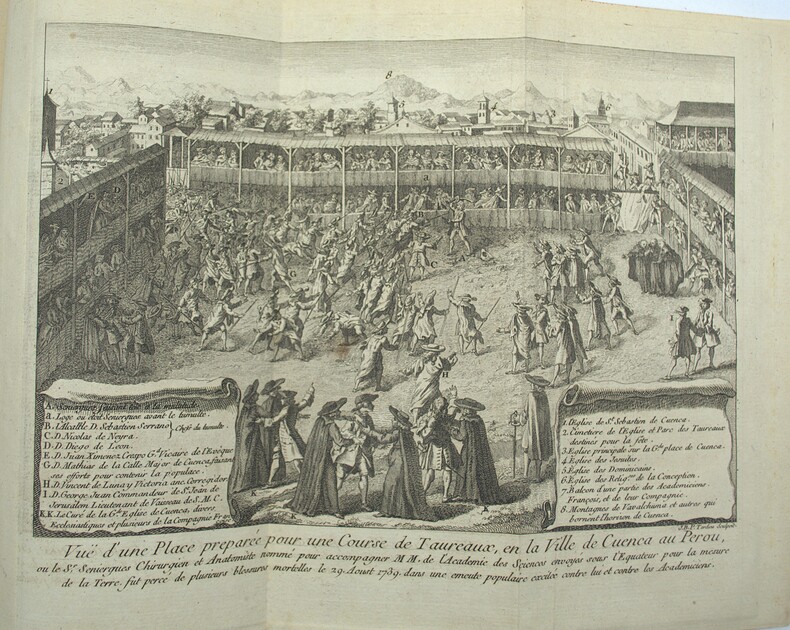 Deuxième édition dont l'originale a paru en 1745. Elle comprend la Lettre à madame *** sur l'émeute populaire excitée par la ville de Cuença au Pérou, le 29 août 1739, contre les académiciens des sciences, envoyés pour la mesure de la Terre (parue en premier lieu en 1746). À la suite, se trouvent les Pièces justificatives relatives à cette lettre et la Lettre de La Condamine ainsi que la Lettre de M. Godin des Odonais. Elle est illustrée de 2 belles planches gravées par Tardieu : la première représentant une place de la ville de Cuenca et la seconde, une carte de l'Amazone. Étiquette de M. Ante. Ruelle, payeur du Trésor royal. Brunet, III, 729. * Membre du SLAM et de la LILA / ILAB Member. La librairie est ouverte du lundi au vendredi de 14h à 19h. Merci de nous prévenir avant de passer,certains de nos livres étant entreposés dans une réserve.