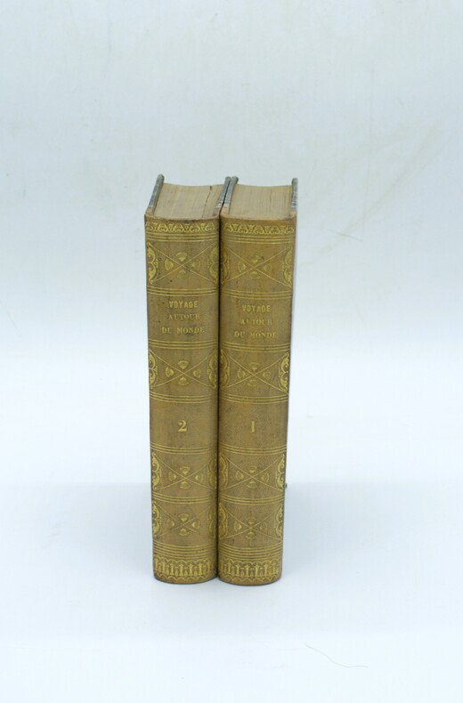 Lesson était le naturaliste de l'expédition scientifique dans le Pacifique commandée par Duperrey à bord de corvette La Coquille. Son récit, presque essentiellement consacré à l'Océanie, est d'autant plus précieux que l'histoire officielle du voyage est restée inachevée. Exemplaire bien complet du feuillet d'errata à la fin du tome II. René Primevère Lesson est un chirurgien, naturaliste,zoologiste et ornithologue français, il entre dans la l’école de médecine navale à 15 ans , participe aux guerres napoléonienne comme chirurgien naval et s’occupe bénévolement du jardin botanique de Rochefort , son départ lors de l’expédition de la Coquille lui permet de se consacré à l’ornithologie et aux oiseaux mouches dont il décrit plus de 110 espèces sur les 330 connues. Borba de Moraes , t. I, p. 408. - Chadenat , n°625. - Sabin, n°40214.P1-13