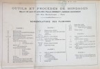 Mulot, Saint-just, léon Dru, paulin Arrault, successeur Outils et procédés de sondages. Puits artésiens. Eaux minérales. Captage et dérivation de sources. Recherche de mines. Études de terrains. Reprise de fondations en sous-œuvre. Études géologiques et hydrologiques. Outillage pour les mines, les colonies et les missions scientifiques. Modèles pour les écoles et universités. In folio (360x220 mm) 2 volumes en 1, texte et atlas, cachet 56 pp, 1 tableau dépliant et un atlas de 240 figures d'outils, installations et exemples de forrages, sondes, trépons, douilles, tarauds, tubages, cylindres, forets, treuils, etc... Bel exemplaire