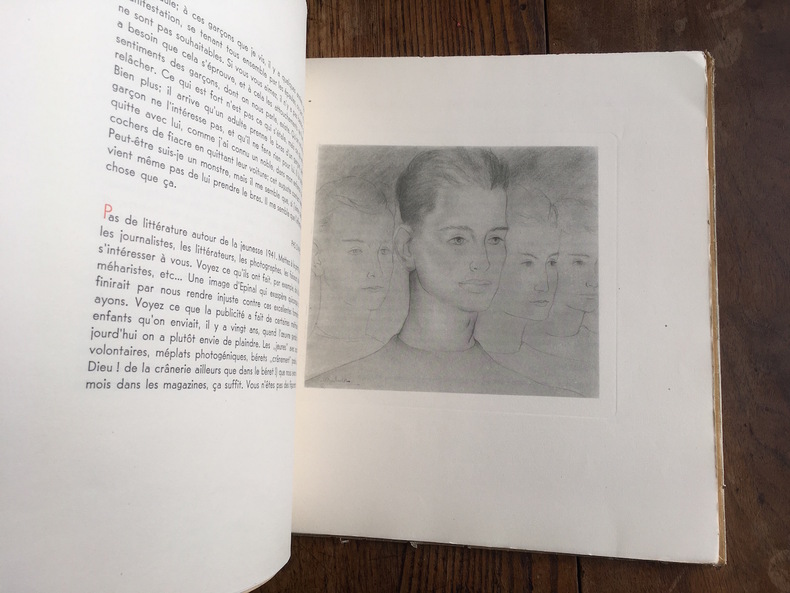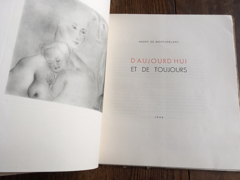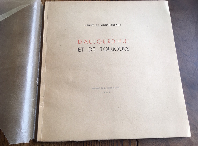 Texte d’Henry de Montherlant – 5 compositions originales N&B de Madeleine Barbedor " Famille, Patrie..à un prisonnier de droit commun - à un chef de jeunesse - la loterie Nationale - Une jeune fille française lit Goethe - Payer - Sur un tué de guerre Allemand - Observations " vol broché, 300x285, très bel état intérieur, 69pp, Exemplaire sur vélin bouffant n° 1765 , ex libris, Paul Chambrillon Editions de la Toison d'Or 1944