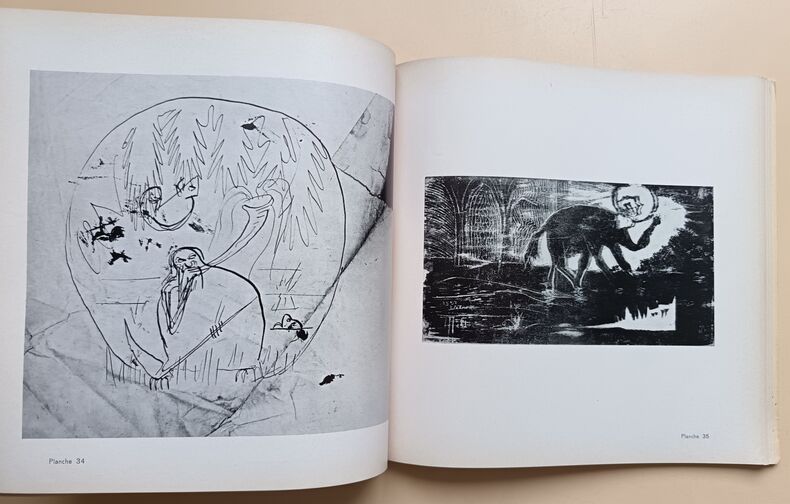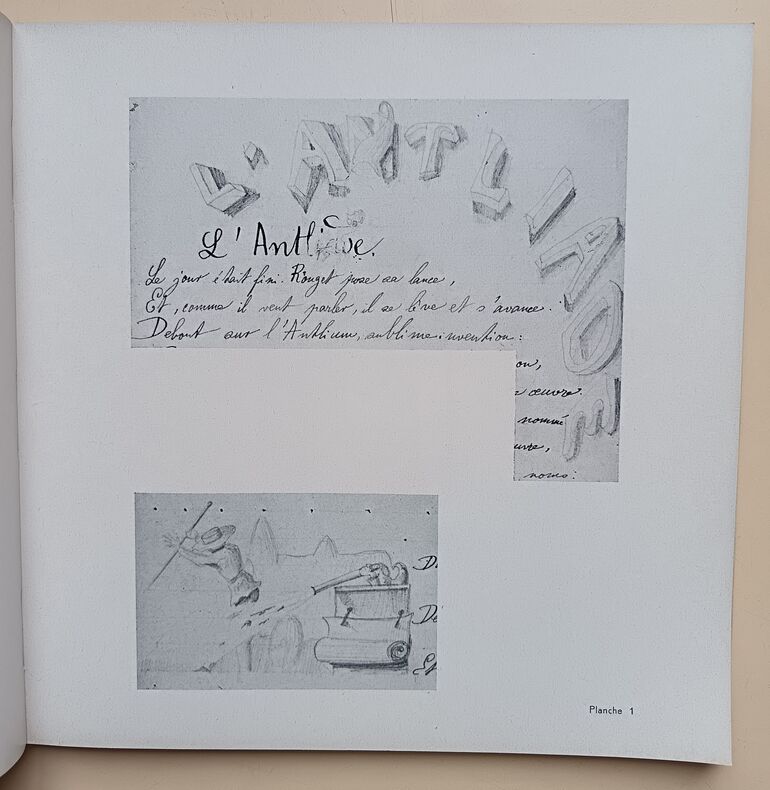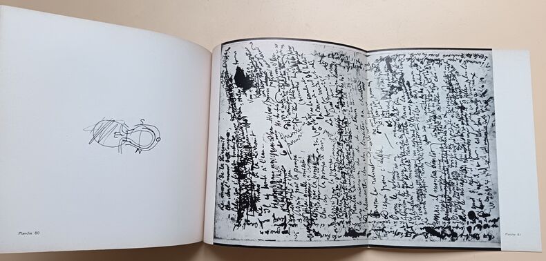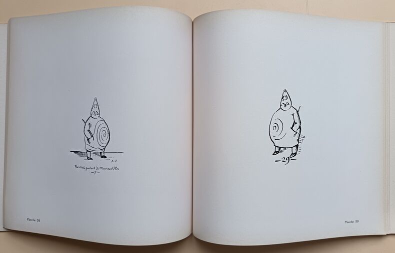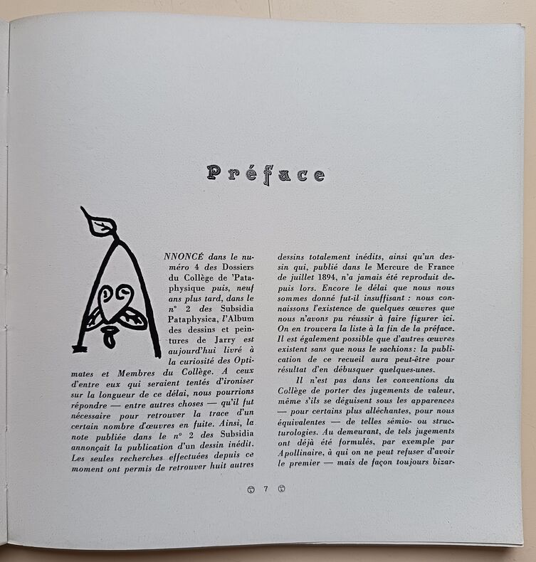 Collège de 'Pataphysique et Cercle Français du livre, 1968, 8 merdre 95 de l'ère Pataphysique. Petit in-4 broché, couverture illustrée, 123 p. Edition originale. L'un des 250 exemplaires de luxe sur Papier Glaciaire. Préface et commentaires des oeuvres par Michel Arrivé. Nombreuses reproductions en noir et blanc. On y joint l'invitation illustrée pour la parution de l'ouvrage Frottements et plis sur la couverture, intérieur bon.