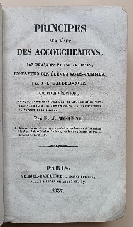 Ed. Germer-Baillière, 1837, 575pp, In-12. État très correct. Reliure plein cuir. (Nombreuses traces d'usure, coins émoussés, coiffes frottés, manque à l'étiquette du dos). Intérieur frais. (Quelques rousseurs). Sans annotations ni phrases/illustrations soulignées. Voir photos.