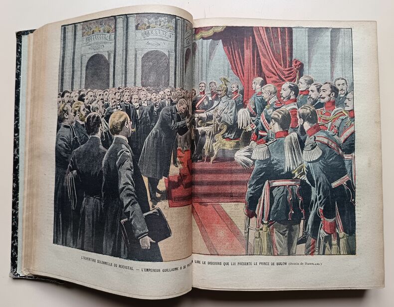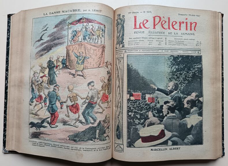 Ed. 5 Rue Bayard, 1907, environ 15 pages pour chaque revue, in-4. Bon état. Couverture rigide. (Bords légèrement frottés, coins émoussés, petite déchirure au mors supérieur). Intérieur frais. (pages jaunies). Sans annotations ni phrases/illustrations soulignées. Voir photos. Rarissime compilation intégrale de la revue de l'année 1907.