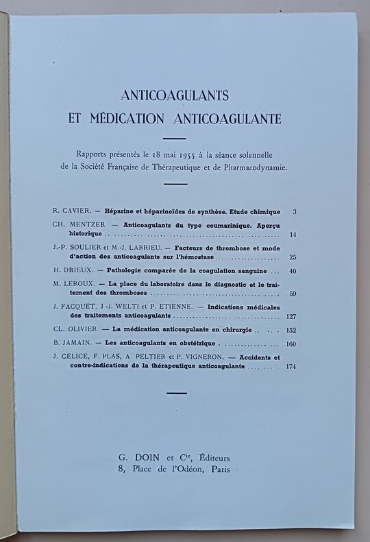 Rapports présentés le 18 mai 1955 à la séance solennelle de la société française de thérapeutique et de pharmacodynamie. Classification Dewey : 610-Sciences médicales. Médecine
