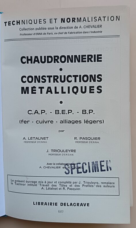 1 vol. in-12 cartonnage éditeur, ill noir et blanc, coll. Technique et Normalisation, Librairie Delagrave, Paris, 1987, 175 pp.