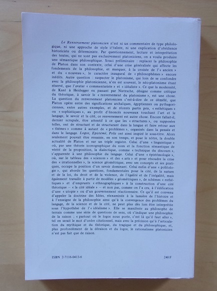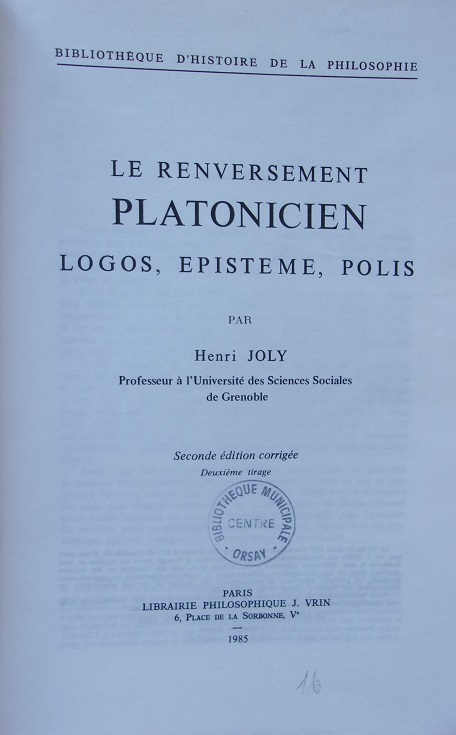 Ed. Librairie philosophique J. Vrin, collection "bibliothèque d'histoire de la philosophie", 1985, 405pp. In-8. Seconde édition corrigée. Etat correct, exemplaire de bibliothèque (avec code-barres, tampons, étiquette, traces de scotch : voir photo), pliure de plat du dessus (couverture souple), intérieur propre (sans annotations ni phrases soulignées).
