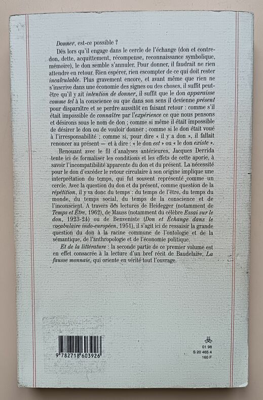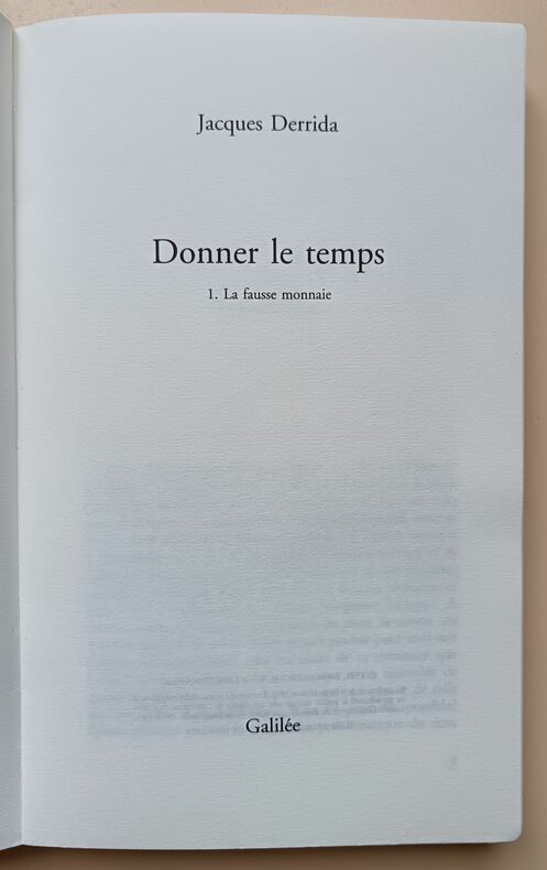 Ed. Galilée, collection "la philosophie en effet", 1998, 216pp, In-8. État très correct. Couverture souple à rabats. (Couverture défraîchie, mors inférieur fendu). Intérieur propre et frais. Nombreuses annotations au crayon à papier tout au long de l'ouvrage. Voir photos.