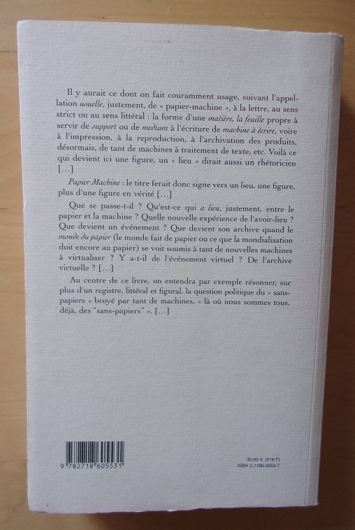 Ed. Galilée, collection "la philosophie en effet", 2001, 399pp. In-8. Bon état, couverture souple à rabats (comportant de légères salissures et éraflures sur les bords : voir photos), intérieur propre (sans annotations ni phrases soulignées).
