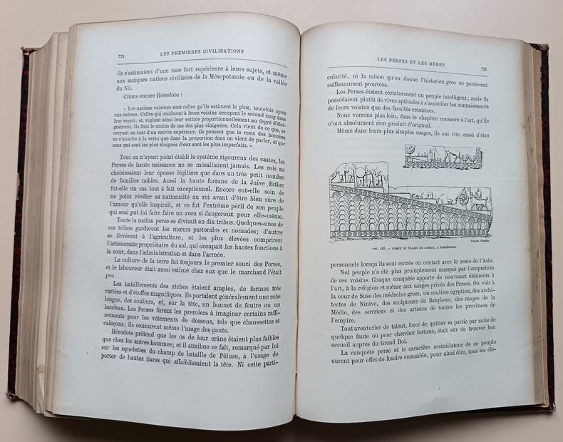 Des premières civilisations jusqu'à la fondation de l'Empire perse, au VIe siècle av. J.-C. Exemplaire en parfait état dans une solide reliure. Image disp.