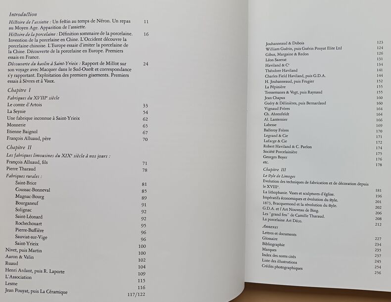 Etude fort bien documentée et remarquablement illustrée en l'honneur de la porcelaine de Limoges. Voir le sommaire sur photos jointes.
